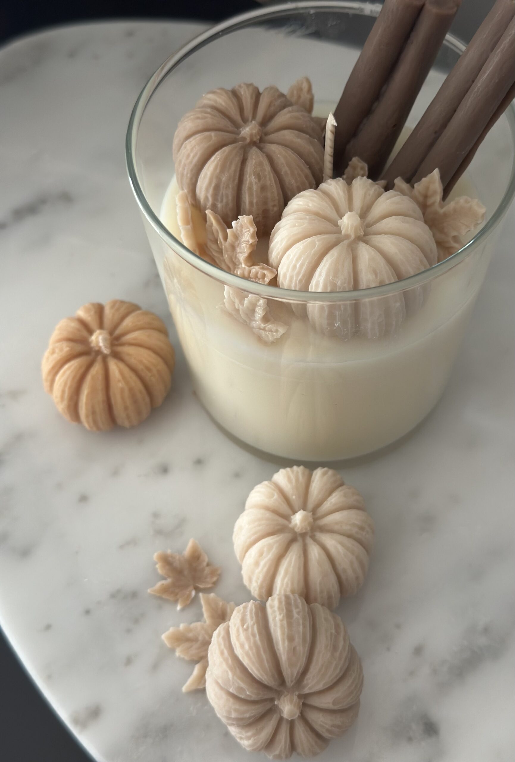 Pumpkin spice is made of 100% soy wax derived from the vegetable soybeans. It is the best well-balanced true to scent candle!